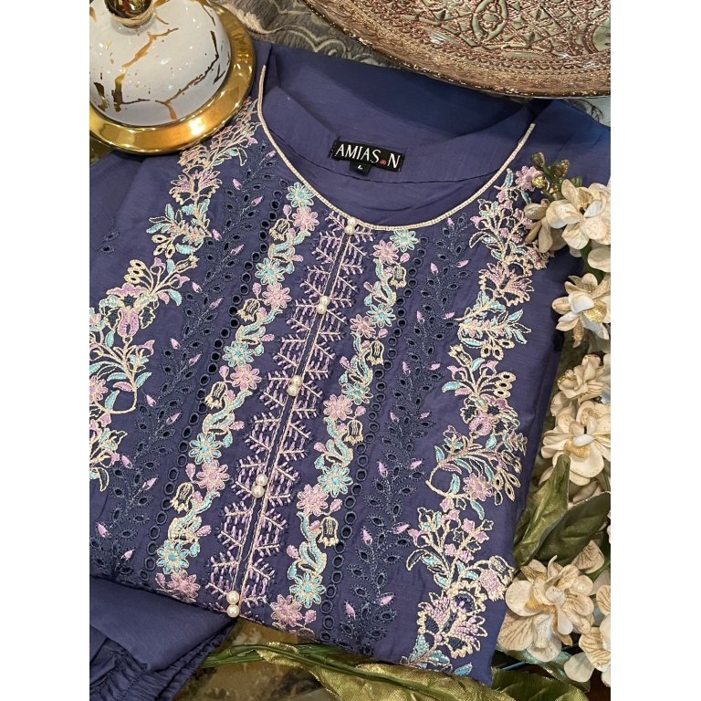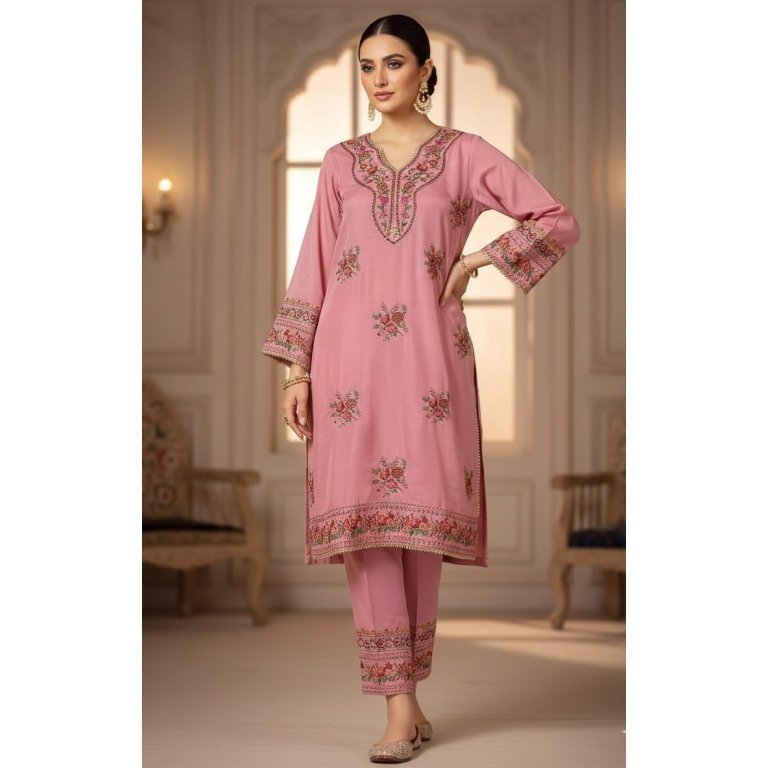 Embroidered Raw Silk Pink Ready-to-Wear Suit
